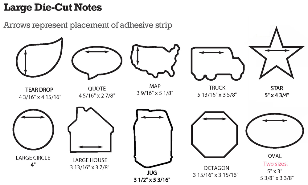 ![]() Features: Superior, precision die-cuts. Ultra re-positionable adhesive. Available in a variety of shapes and sizes. Have your logo and message imprinted in digital 4-color process. Available in Ultra-White, yellow, green, blue, ivory or gray paper. Also, in new neon colors—bright orange, bright green, bright pink and bright yellow! Call for details on ordering neon colors. Looking to go eco-green? Try our eco-friendly option of white 100% post consumer recycled paper for an additional price. Call us for details. Made in the USA. Order 25 Sheet Pad Large Adhesive Pads: Order 50 Sheet Pad Large Adhesive Pads: Order 100 Sheet Pad Large Peel Back Notes: |
